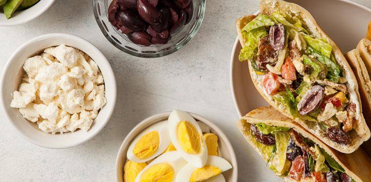 Try these pita pockets for a Mediterranean twist on classic cobb salad. Feta cheese, olives, and tzatziki sauce are added to traditional cobb ingredients, and stuffed into a pita for easy eating that kids will love.