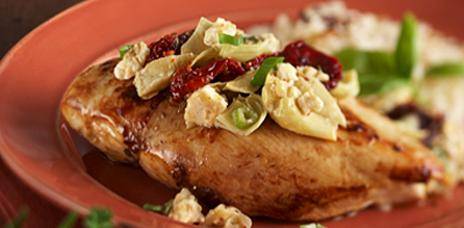Super simple to make, and oh so flavorful! Chicken and rice are a classic combination, made new by the intense concentration of flavor from the feta cheese, artichokes, and sun-dried tomatoes. Everyone to whom I have served this dish raves about it!