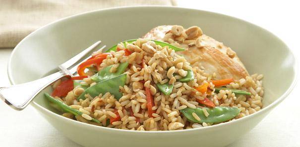 Simple and quick: cook rice, then combine everything, for a light, crunchy Asian-style salad that is satisfying and delicious.