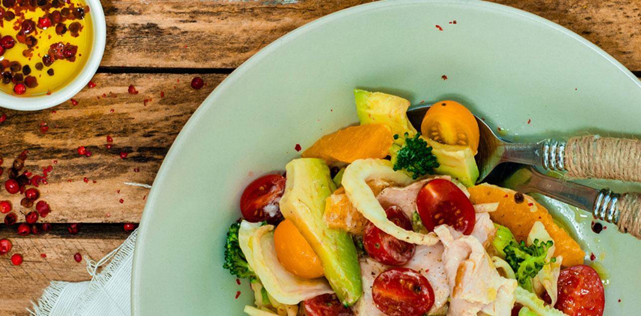 Enjoy chicken on a bed of vegetables for a hearty, tasty meal. Use an aromatic extra virgin olive oil to complement the citrus notes from the orange slices.