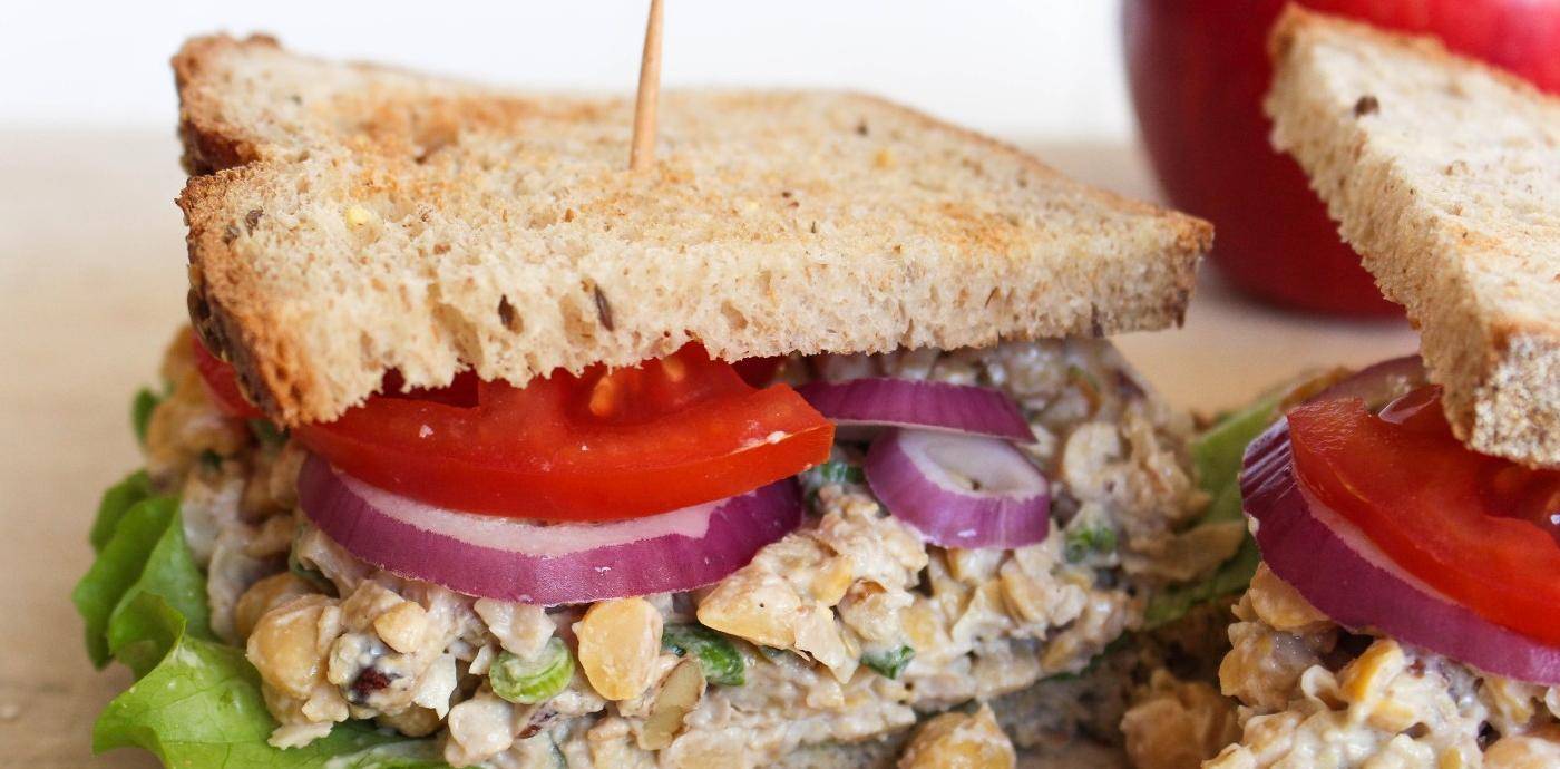 All the delicious flavors of chicken salad sandwiches—but with heart-healthy chickpeas and walnuts! This vegetarian sandwich is creamy, crunchy, and perfect on toasted whole grain bread, or tucked into a whole wheat pita.