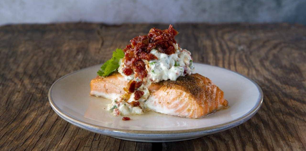 Take your salmon to the next level with a delicious yogurt cream and flavorful chutney!