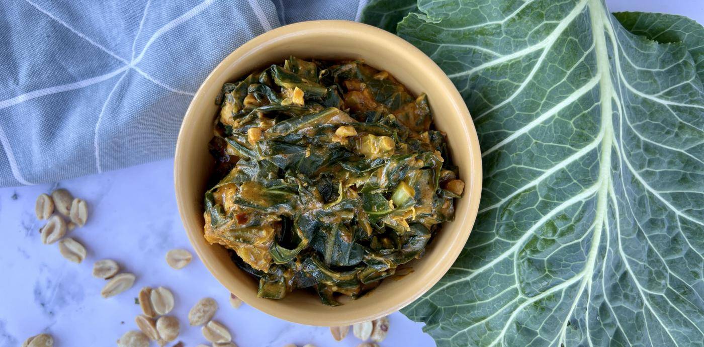 Dovi is a peanut sauce enjoyed in stews throughout Zimbabwe, and can contain either meat, vegetables, or both. This recipe forgoes meat, and includes collard greens as the main ingredient. Tempeh is also added for protein and texture, but feel free to use your favorite protein.. This makes a great side dish, or can be a complete meal with added protein and a starch. Sadzas, like the Millet Sadza go great with this dish.