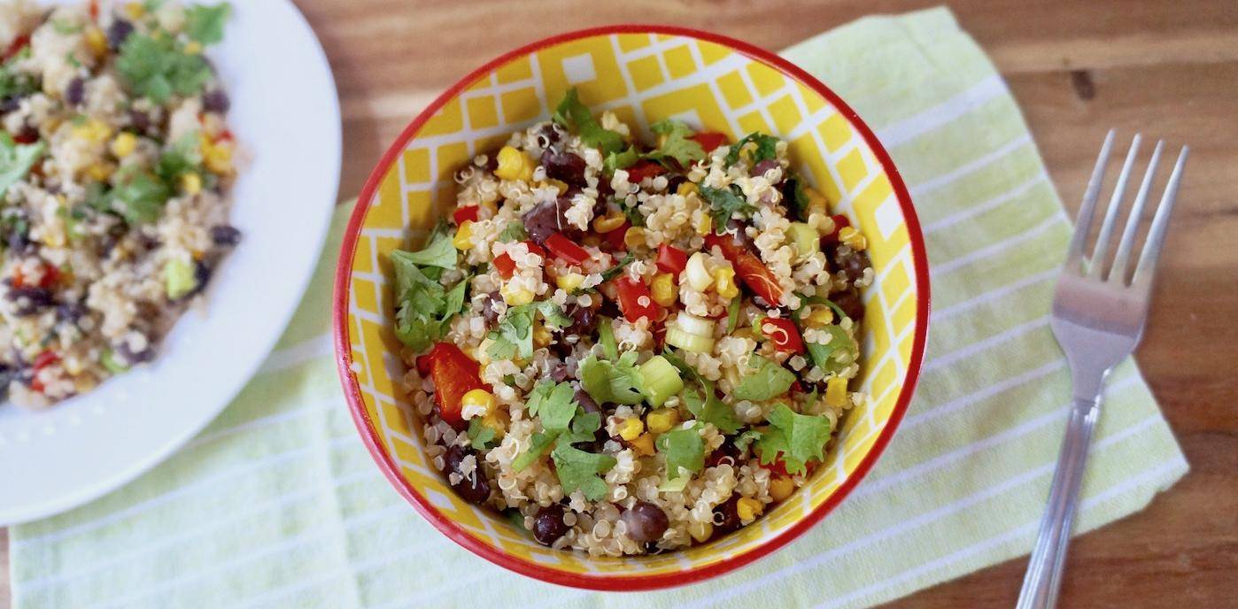 This colorful salad was inspired by a similar one I had at a brew pub (of all places!). It looks beautiful presented on a bed of leafy baby greens or serve with whole grain tortilla chips and scoop it!