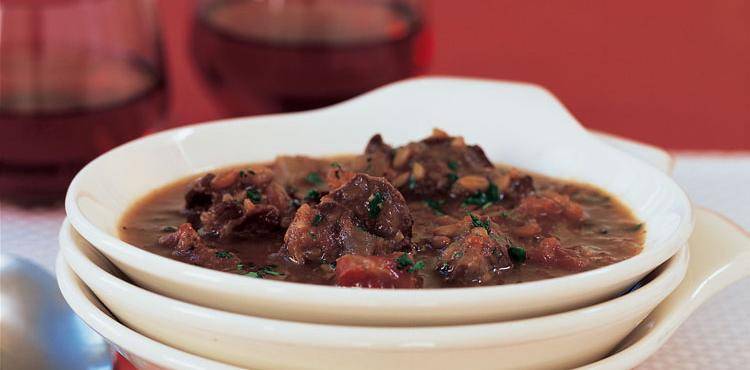 Rye berries have a nice, peppery flavor that complements the lamb. Vegetarians can use seitan in place of lamb and a vegetable stock, and cook just until the rye is tender.