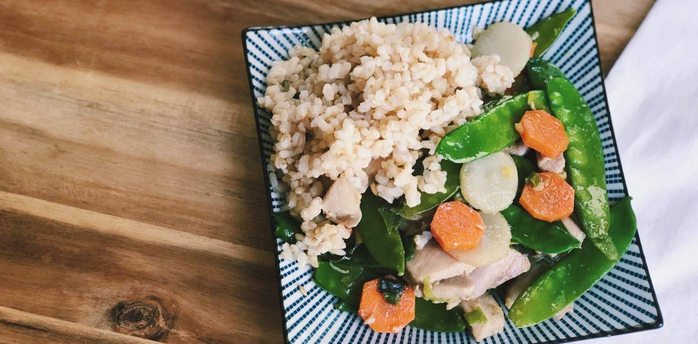 For a meatless meal, try tofu instead of chicken. Some of our other favorite whole grains for stir fries include brown basmati rice, brown jasmine rice, quinoa, and sorghum.