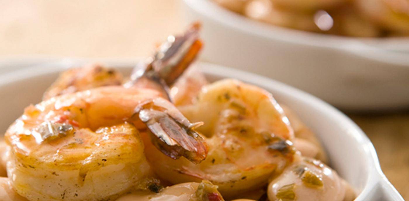Gigandes beans, named for their massive size, are a knockout ingredient in salads or pastas. Find them pre-cooked and marinated in the canned foods aisle or at the prepared foods bar at your grocery store. Plump and creamy, they’re marinated in a tangy vinaigrette that pairs deliciously with grilled shrimp.
