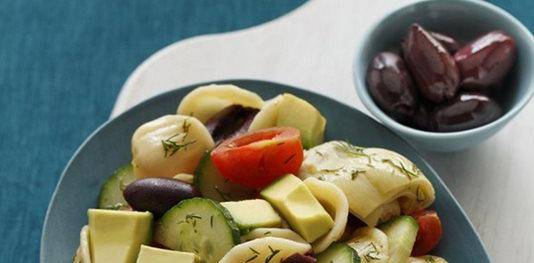 Avocados and marinated artichoke hearts star in this delicious pasta salad featuring the flavors of the Mediterranean. A simple dressing made with fresh lemon juice and olive oil is easy to make.