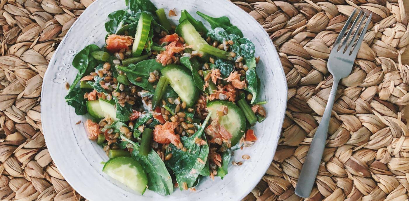 Rye and salmon are staples throughout the Nordic countries. This salad utilizes hot smoked salmon, which flakes easier than lox.
