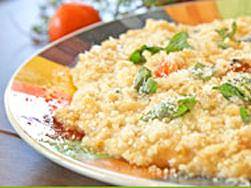 This recipe is a great way to make use of leftover oatmeal. Quick oats cooked in broth and cherry tomatoes and fresh basil sautéed in garlic oil add complex and complimentary layer of flavors to the finished plate.