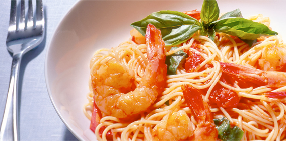 Homemade marinara sauce is easier to make than you might guess, and is a wonderful way to introduce yourself to pasta sauces. This recipe can easily be doubled for freezing and sharing, and it is a great pizza sauce as well. Experiment with adding other ingredients to this basic recipe for different flavors—crushed red pepper, olives, sauteed mushrooms, or other fresh herbs. If you don’t want to add shrimp, feel free to skip step #2.