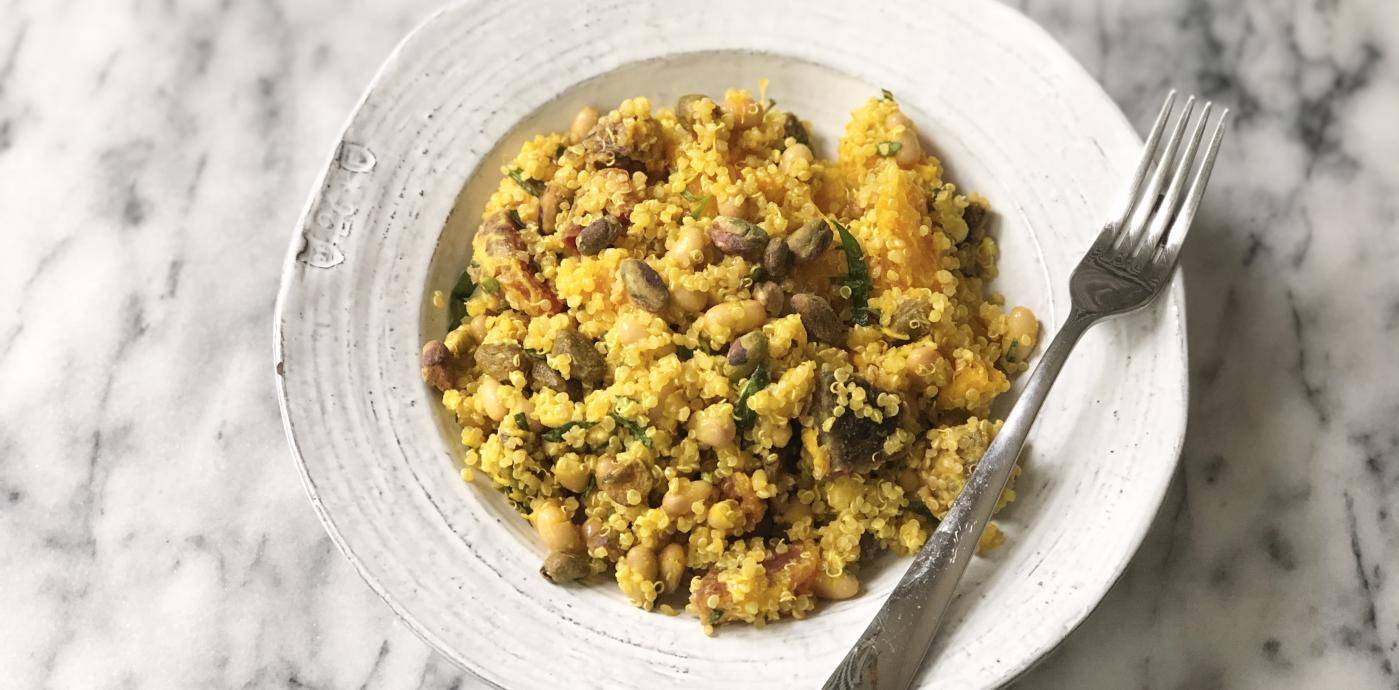 Grain salads like this one take well to meal prepping, as they can last several days in the fridge and taste great both chilled or reheated. It is also adaptable to what you have on hand. No white beans? Try chickpeas. No quinoa? Try wheat berries. Feel free to garnish with fresh herbs.