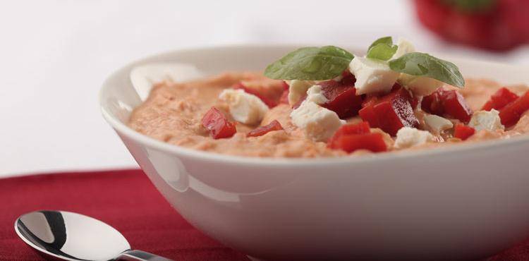 2 medium red bell peppers, seeded and halved (leave a thin slice to garnish)