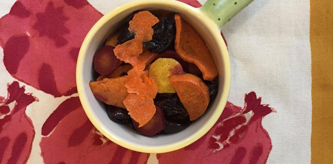 Tzimmes is a Passover staple traditionally made with sweet potatoes, carrots, and dried fruits and served as a stew with brisket. Try this vegetarian version in which we’ve roasted some of our favorite African heritage fruits and vegetables and added a bit of spice to the party in the form of ras el hanout. You’ll be perfectly satisfied eating this as a side dish, or as a main dish tossed with quinoa for protein.