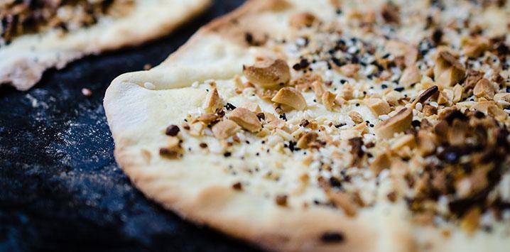This easy-to-make flatbread is made with whole wheat flour and tangy buttermilk and topped with crunchy peanuts. The perfect accompaniment for Mediterranean dips and sauces, or delicious on its own!