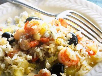 All the deep flavor of risotto – without the endless stirring! Wine adds an important layer of flavor in this pilaf, making up part of the liquid absorbed by the long-grain rice (not arborio rice, as in risotto). The wine balances the strong flavors of black olives and feta cheese, and complements the main ingredient, shrimp, very nicely.