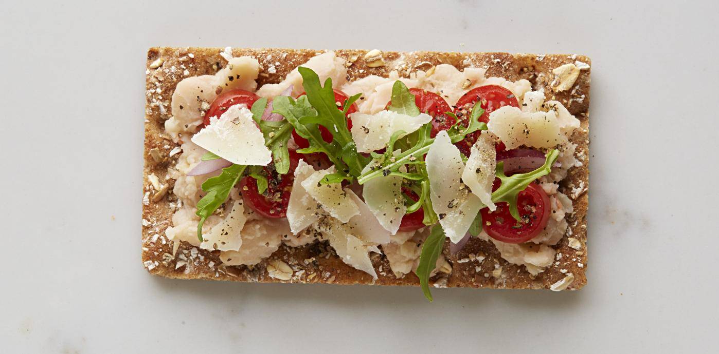 These topped crispbreads work as a colorful appetizer or flavorful snack.