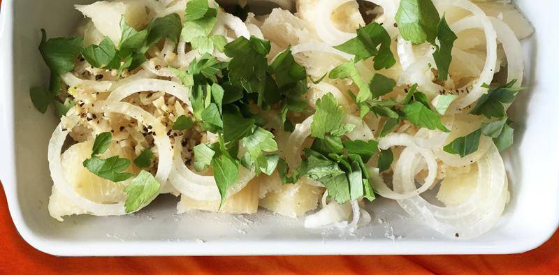 2 pounds fresh or frozen yuca, cut crosswise into 1-inch-thick pices and peeled